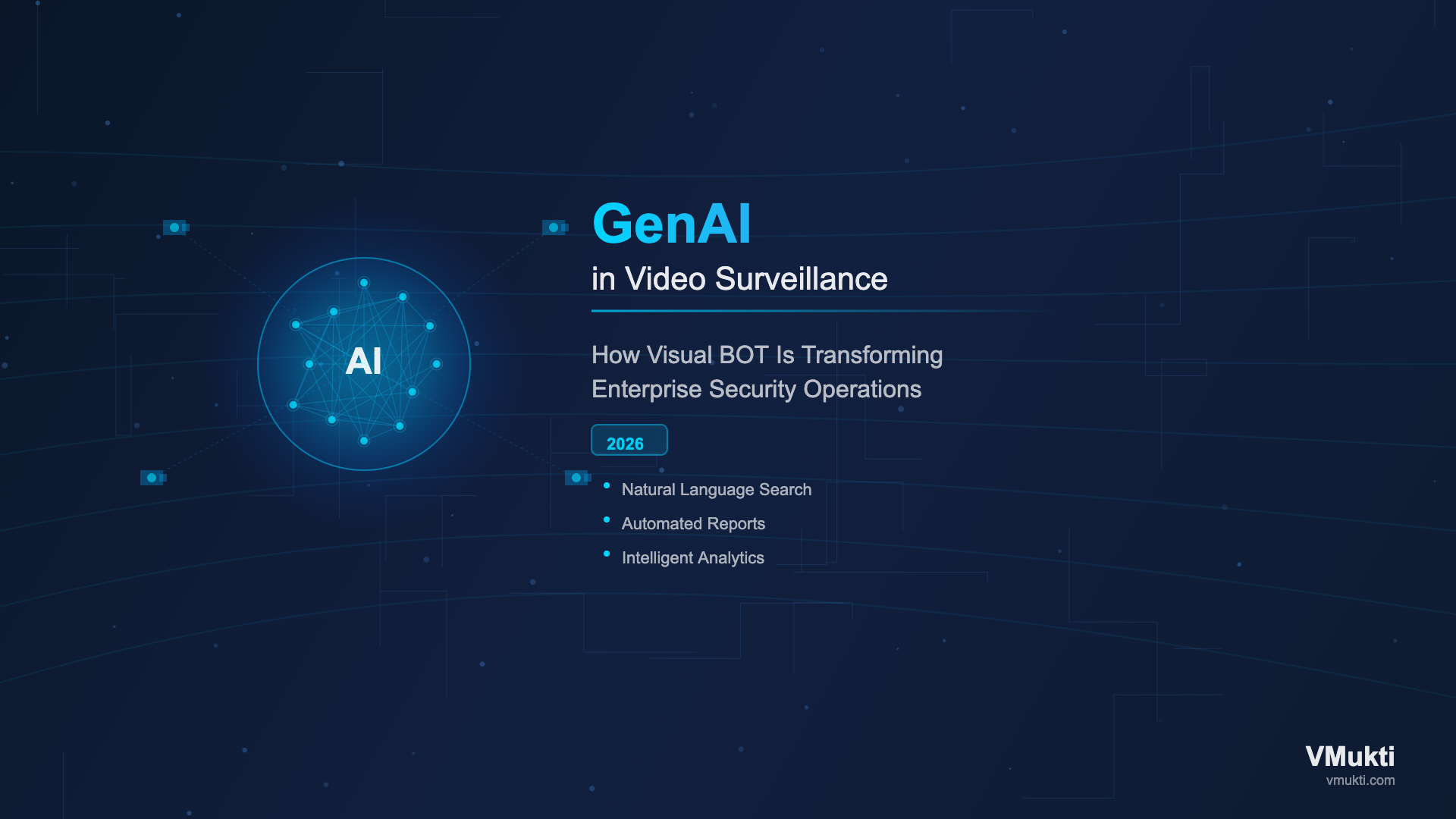 Discover how Generative AI and Visual BOT are revolutionizing enterprise video surveillance. Natural language video search, automated incident reports, and intelligent camera management by VMukti — the future of security operations is here.